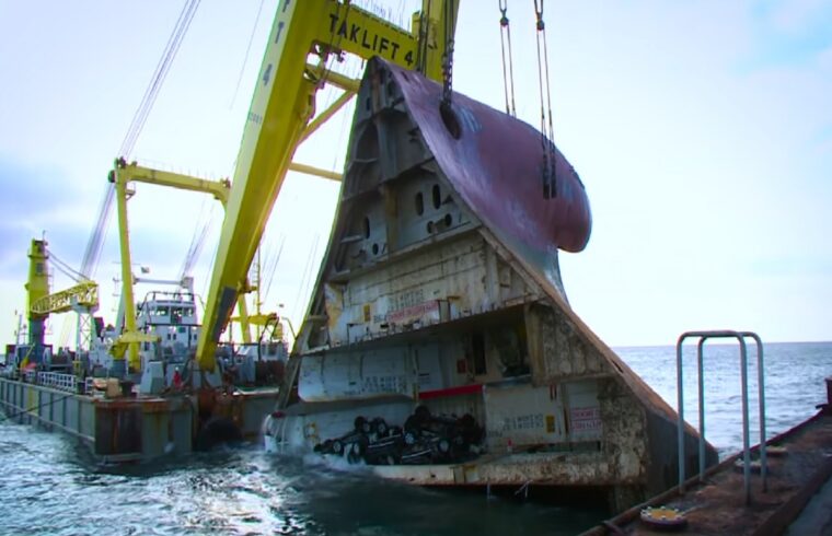 Μόλις έγινε η απάντληση της υπόλοιπης ποσότητας καυσίμου από το πλοίο, κόπηκε σε 8 ξεχωριστά κομμάτια και ανασηκώθηκε από τον βυθό. Η ίδια μέθοδος χρησιμοποιήθηκε για τη απομάκρυνση του ναυαγίου του πλοίου μεταφοράς αυτοκινήτων που βυθίστηκε στη Μάγχη MV Tricolor, αλλά και για την αφαίρεση της πλώρης του ρωσικού υποβρυχίου Kursk προτού σηκωθεί το υπόλοιπο κύτος.